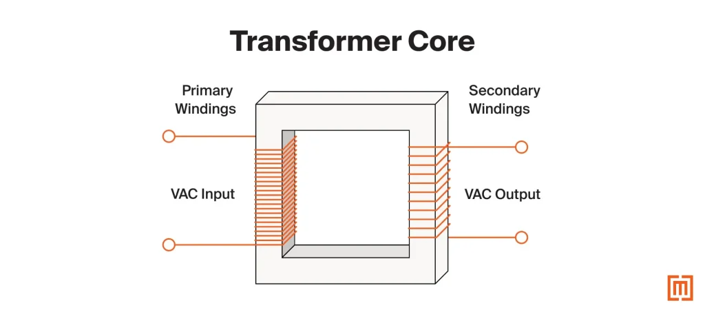 | Primary Winding | Receives input electrical voltage |