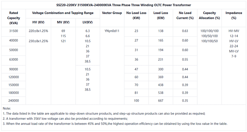 - Capacity range: usually from 120MVA to 300MVA, can be customized according to customer needs.