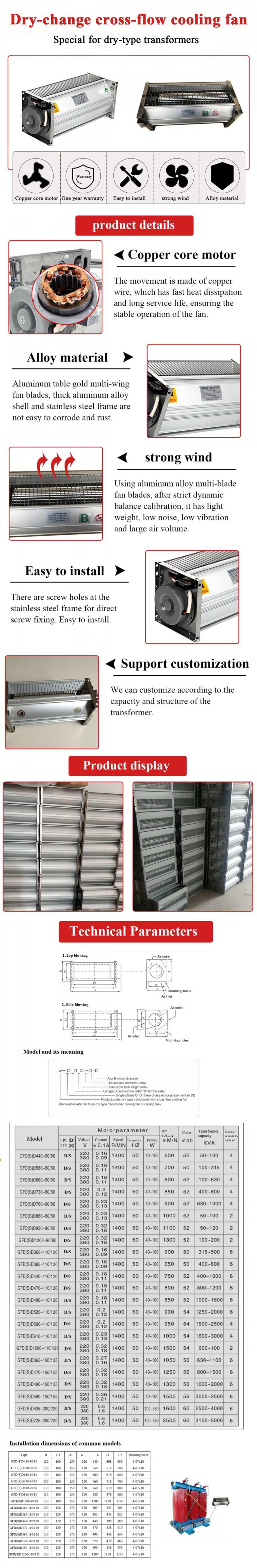 Dry-variable cross-flow cooling fan for Dry-type transformer China Manufacturer