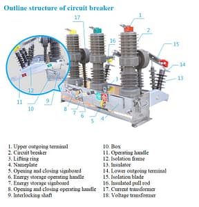The core component is its vacuum interrupters. These interrupters provide reliable arc quenching. They ensure safe current interruption. The breaker uses a spring-operated mechanism. This mechanism is known for its dependability. It provides fast closing and opening actions. Manual charging is standard. Electric charging options are also available.